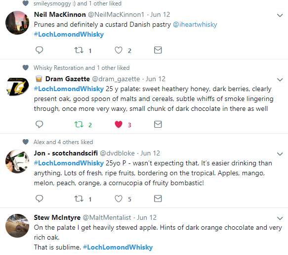 A fantastic evening trying some fantastic drams! Many thanks to Steve for organising, Loch Lomond for supplying the drams and my fellow tweeters on the night!