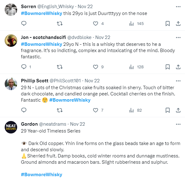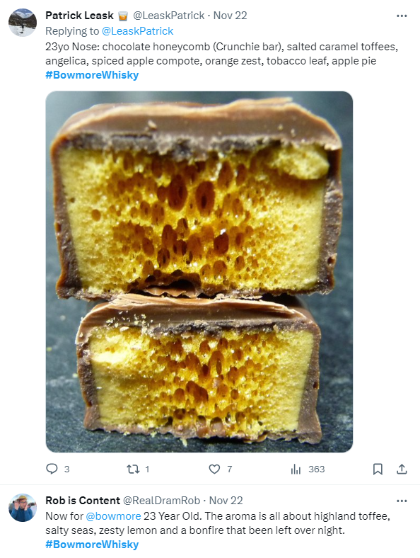 @bowmore chose a @TweetTastings to share some of their older whiskies!